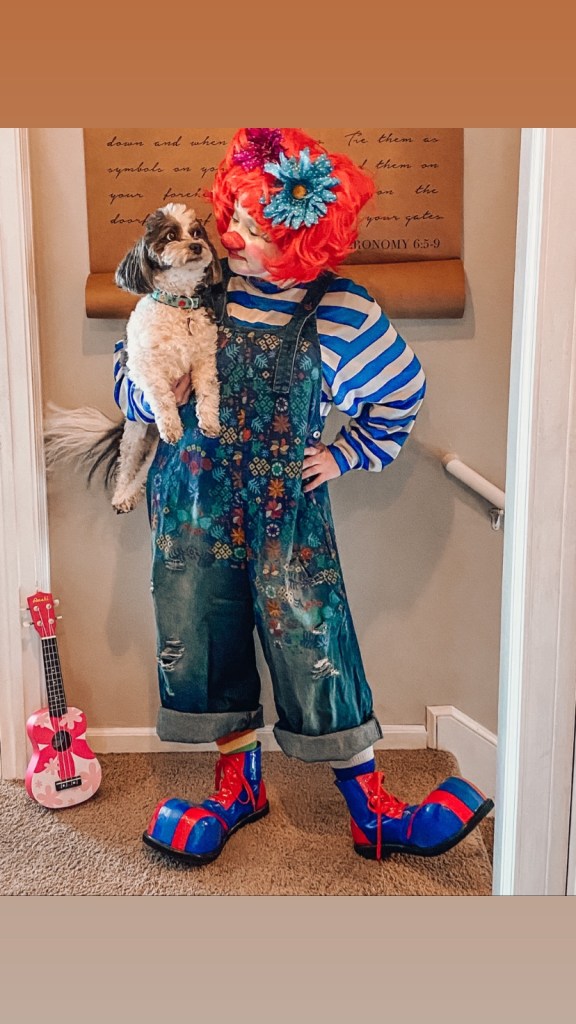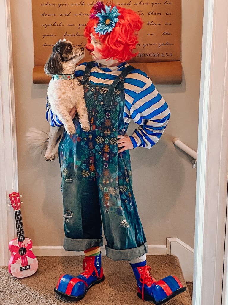Sometimes, we need to let go…and do something fun…and that’s what I did. I came home and tried on my new overalls for my clown costume and put it all together…and for my dog to join in on the fun!