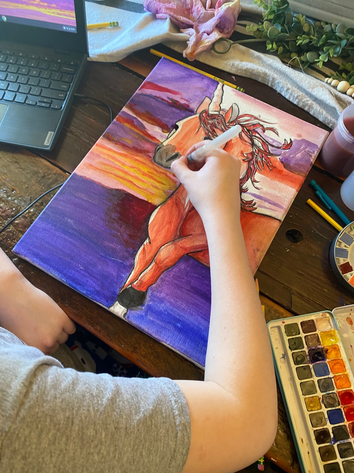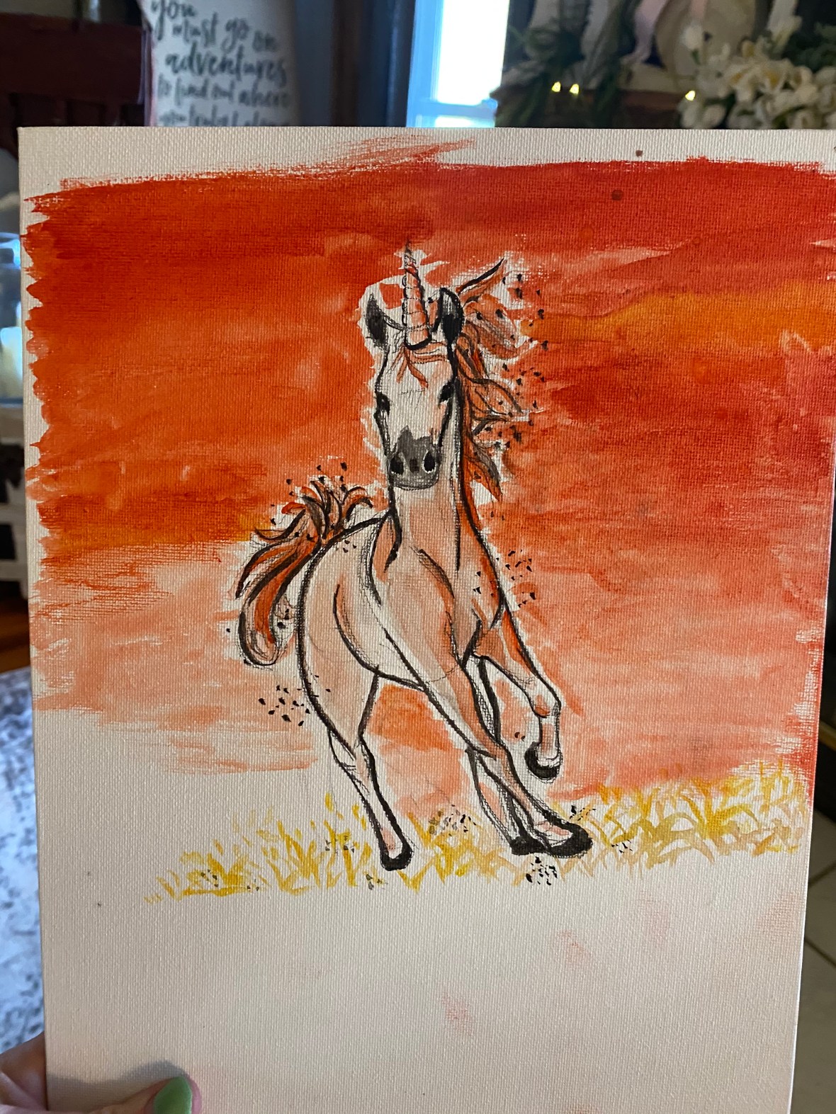 I cried after my daughter got off face time with her violin teacher…when she cried about missing skating with her friends and ice skating and field trips and friends coming over to hang out…so I’ve distracted her the best way I know how…and bought her art supplies and started her on an online class which she of course finished WAY before she should…and now…the kid has a side business going….and she’s making the walls of my house look way cooler.