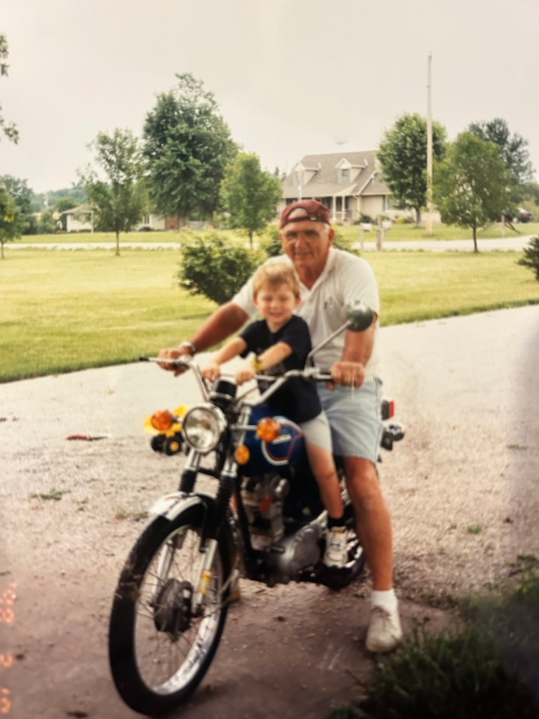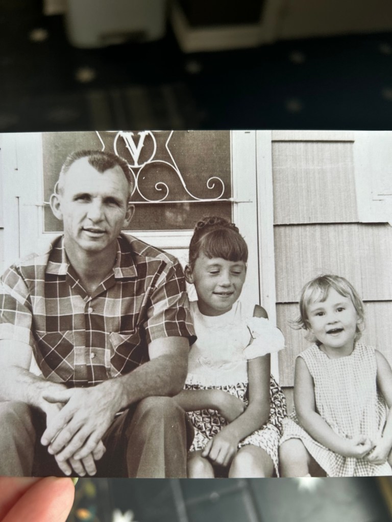 My dad loves the outdoors. He took us fishing and camping and canoeing and walks in the woods. He chopped wood , he took me on rides on his motorcycle. He loved horses and dogs…he had the biggest strongest hands.